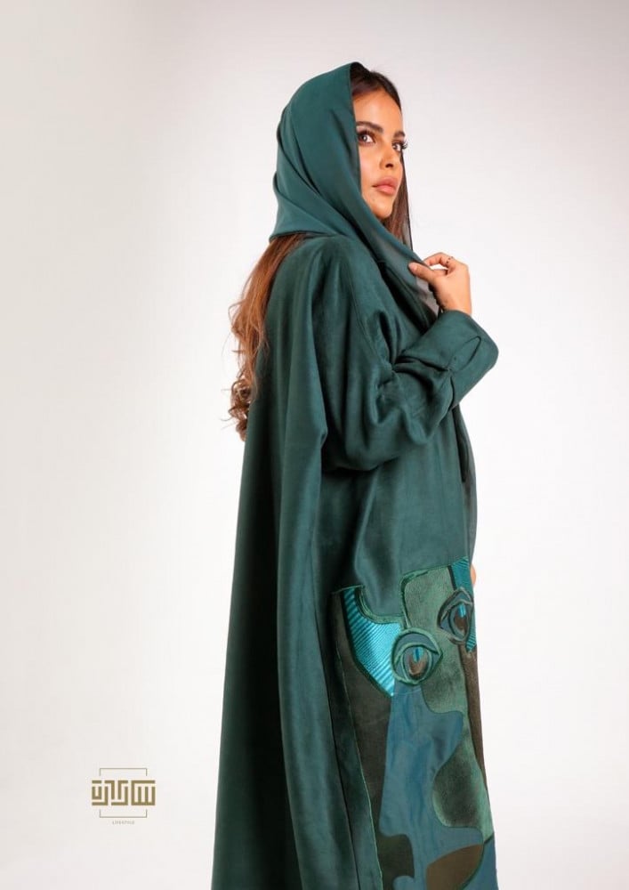 قماش شاموا فاخر وناعم عباية لاورا مصنوعة من قماش الشاموا الفاخر الذي يتميز بنعومته الملمسية الفائقة، مما يوفر لكِ راحة استثنائية طوال اليوم. الشاموا هو قماش مخملي يُشعر البشرة بالنعومة والرفاهية، وهو مثالي للأوقات التي تحتاجين فيها للراحة والأناقة.