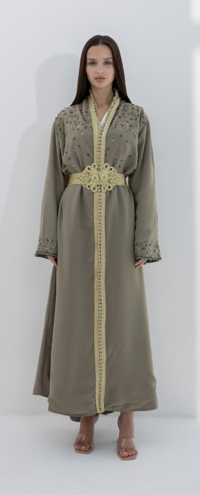 سدره قفطان من الحرير المبطن والمشكوك يدويا مع تفصيب مغربي فاخر وحزام انيق