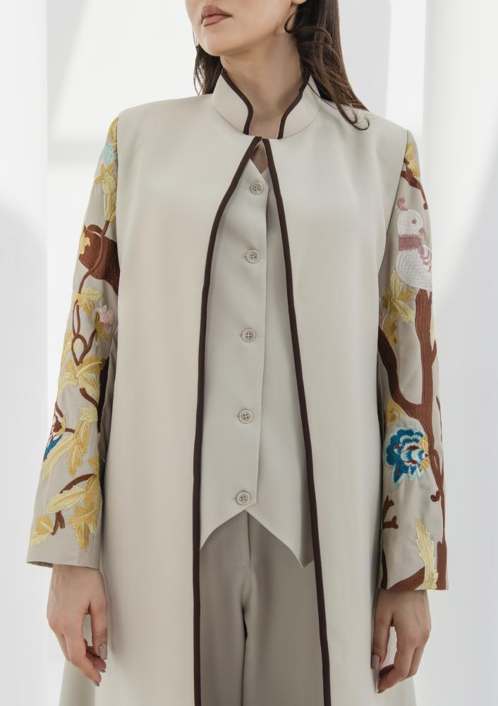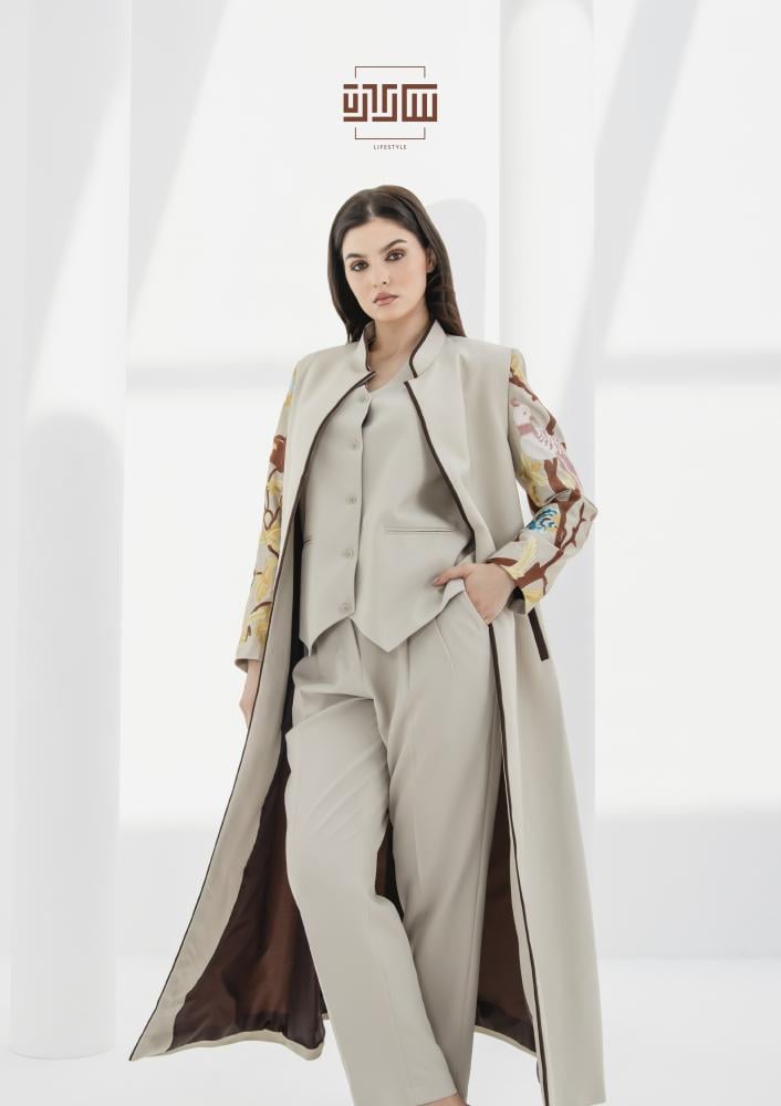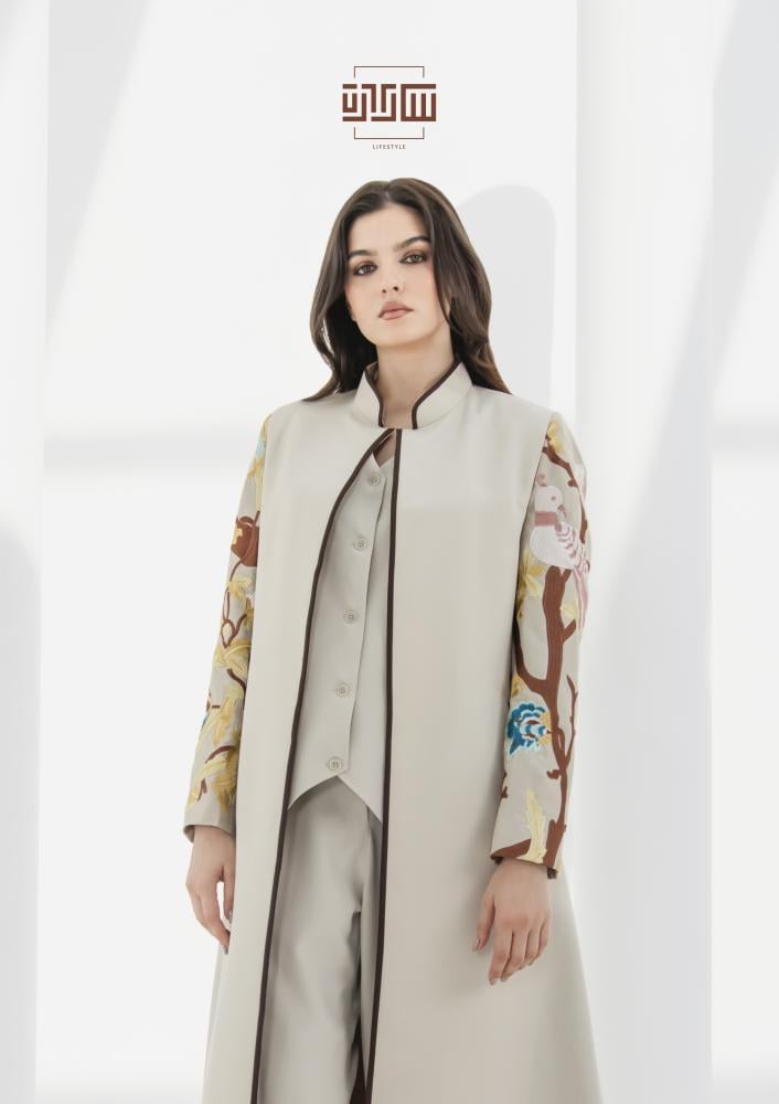 - التفاصيل: تطريز فاخر على الأكمام يعكس الفخامة والرقي.